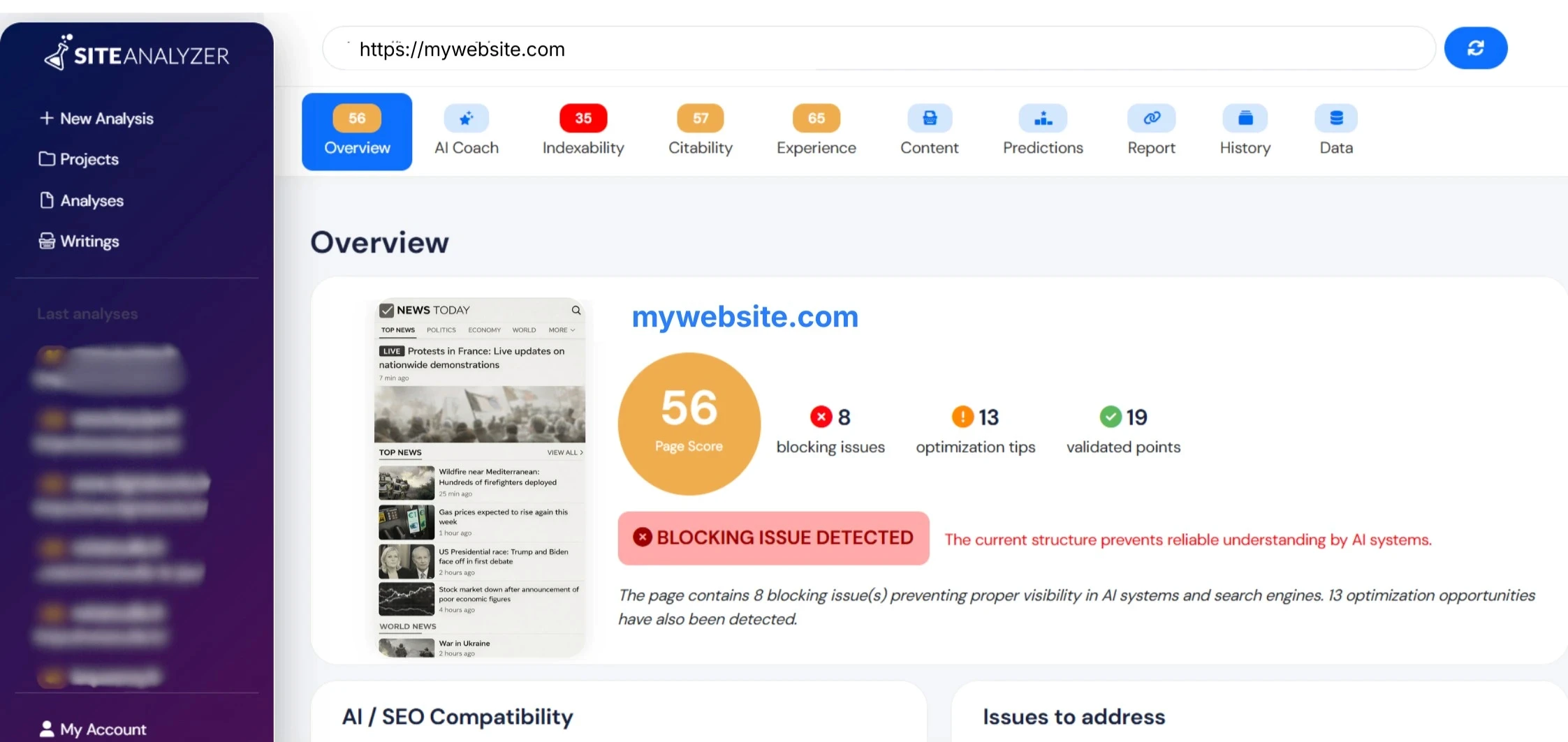 Get tailored explanations and advice based on your CMS, such as WordPress, Wix, and others to optimize your success on search engines and AI language models.